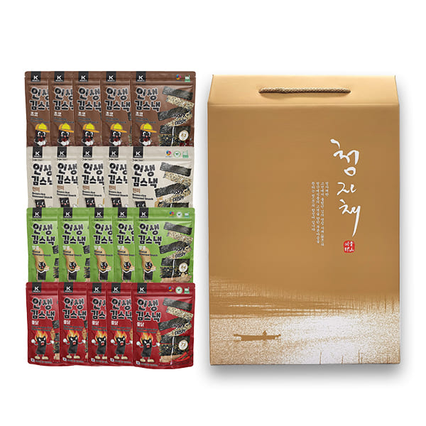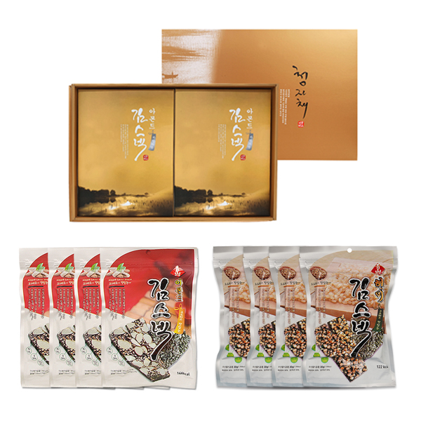 선 물 세 트 한국의 맛과 가치를 세련된 구성으로 담아낸 청산에식품 김 선물세트, 중요한 순간을 더욱 빛내는 고급스러운 선물이 됩니다. 김 스 낵 선물세트 대량구매 천변초 1호 세트- 천변초5봉 천변초5봉(기획케이스) [원산지:국내산] 천변초 2호 세트 - 천변초5봉+천변초5봉 천변초5봉 + 천변초5봉 (기획케이스2) [원산지:국내산] 인생 곱창김 세트- 구운곱창김12봉 x 2 구운곱창김12봉x2 (스페셜케이스)[원산지:국내산] 곱창김 3호 세트- 초사리 곱창돌김 50매 초사리 곱창돌김 50매 (기획케이스) [원산지:국산] 곱창김 4호 세트- 구운곱창김 2봉 + 곱창도시락김12봉 + 청자채캔 2개 두번구운곱창김(25매) 2봉 + 구운곱창도시락김 12봉 + 청자채캔 2개 [원산지:국산] 곱창김 5호 세트- 구운곱창김(25매) 8봉 두번구운 곱창김(25매) 8봉 (두번구운곱창김 전용케이스)[원산지:국산] 곱창김 6호 세트- 청자채 6캔 + 천변초 7봉 청자채 6캔 + 천변초 7봉 [원산지:국내산] 곱창김 7호 세트- 청자채 6캔 + 곱창김 100매 청자채 6캔 + 생곱창김 100매[원산지:국내산] 김스낵 1호 세트- 김스낵 20g 총 10봉 김스낵 20g [초코 5봉/현미 5봉/땅콩 5봉/불닭 5봉] 중 택2 [원산지:국산] 김스낵 2호 세트- 청산에 김스낵 30g 총 8봉 현미김스낵30g 4봉 + 아몬드김스낵 30g 4봉 [원산지:국내산] 김스낵 3호 세트- 캔 4 + 김스낵 30g 총 4봉 청자채 캔 4 + 현미김스낵30g 2봉 + 아몬드김스낵 30g 2봉[원산지:국내산] 김스낵 4호 세트- 김스낵 80g 총 6봉 [땅콩김스낵 80g / 현미김스낵 80g / 불닭김스낵80g] 중 택 6 봉